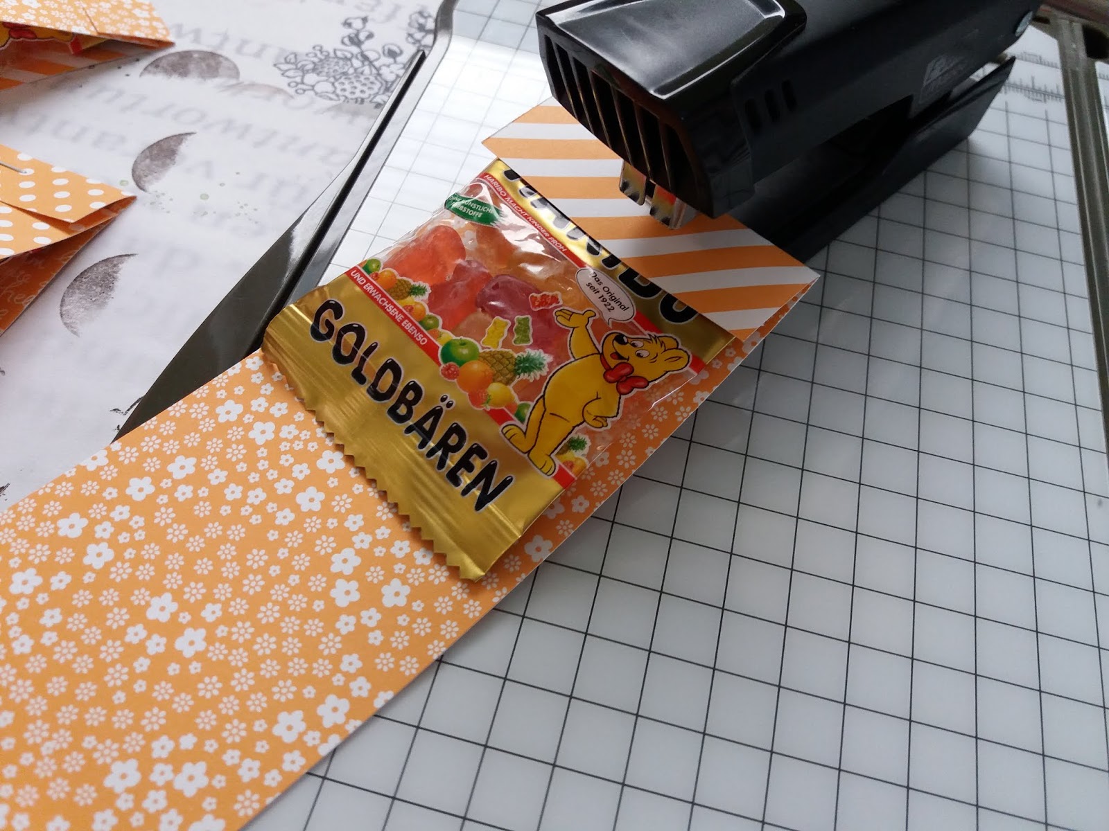 Dann legt ihr eure Goldbärentütchen in die Kante und tackert diese fest.